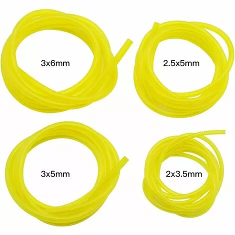 Vous obtiendrez 4 tuyaux de carburant de tailles différentes, diamètre intérieur * diamètre extérieur : 3 x 6 mm, 3 x 5 mm, 2,5 x 5 mm, 2 x 3,5 mm. La combinaison parfaite pour répondre à vos différents besoins.